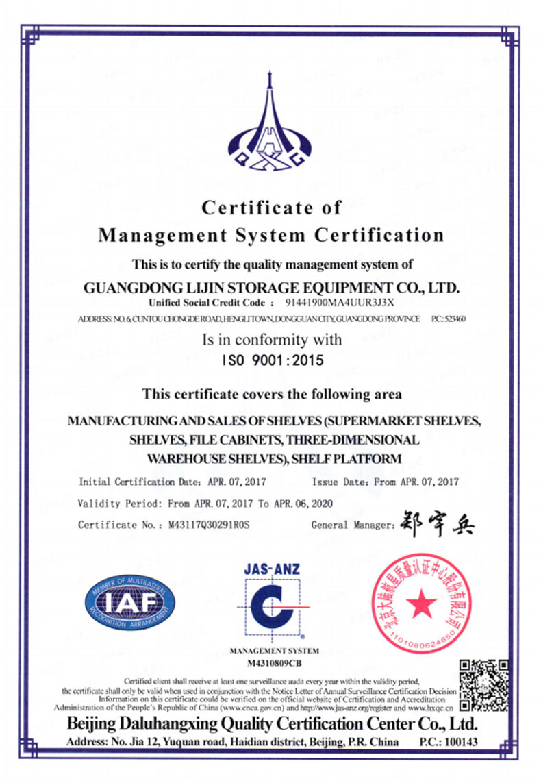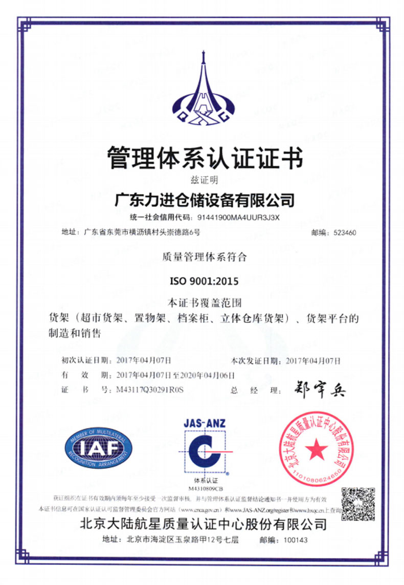?2016年5月 更名為廣東力進倉儲設備有限規(guī)公司,搬遷至東莞市橫瀝鎮(zhèn)村頭工業(yè)區(qū),占地面積12800平方米。